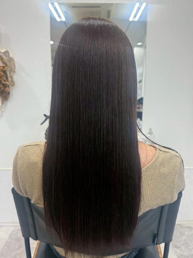 【髪質改善】艶髪ストレート 髪質改善ストレートで、広がりやくせを抑え、憧れの艶髪へ。まとまりやすく、手触りも滑らかに。内部補修で持続性もアップ。毎朝のお手入れが楽になります。 【住所】 福岡県太宰府市通古賀4丁目10-7 […] シースルーミディ 顔周りのカットで小顔効果抜群のミディアムスタイル。シースルーバングで抜け感をプラスし、トレンド感も演出。 【住所】 福岡県太宰府市通古賀4丁目10-7 【アクセス】 西鉄都府楼前駅/二日市駅/都府楼南駅 […] シルキーストレートロング 髪質改善ストレートで、憧れの艶髪へ。広がりやすい髪やくせ毛でお悩みの方にオススメです。毛先まで潤う、まとまりの良いスタイルを実現します。 【住所】 福岡県太宰府市通古賀4丁目10-7 【アクセス […] 【艶髪】髪質改善ストレート 髪質改善ストレートで毛先まで潤う艶髪に。広がりやくせ毛を抑え、まとまりやすい髪へ導きます。ダメージ補修で、指通りの良い美髪を叶えます。 【住所】 福岡県太宰府市通古賀4丁目10-7 【アクセス […] 大人ナチュラルストレート シンプルながらも上品さを感じる大人のナチュラルストレートスタイル。自然なツヤ感と、顔まわりを包み込むやわらかいラインで小顔効果も◎ 【住所】 福岡県太宰府市通古賀4丁目10-7 【アクセス】 西 […] 【髪質改善】艶感レイヤー 髪質改善でまとまる艶髪へ。レイヤーカットで軽さを出し、動きのあるスタイルに。広がりやすい髪やくせ毛の方にもおすすめ。憧れの美髪を叶えます。 【住所】 福岡県太宰府市通古賀4丁目10-7 【アクセ […] 【艶髪】髪質改善カラー 髪質改善カラーで透明感と艶をプラス。ダメージを補修しながら、繰り返すほど美しく。手触りもなめらかになり、毎日のスタイリングが楽になります。 【住所】 福岡県太宰府市通古賀4丁目10-7 【アクセス […] 【艶髪】さらツヤストレート 髪質改善ストレートで誰もが憧れる艶髪に。広がりやくせ毛でお悩みの方に最適。丁寧な薬剤処理でダメージを最小限に抑え、潤いと輝きを与えます。 【住所】 福岡県太宰府市通古賀4丁目10-7 【アクセ […] ゆるウェーブロング 毛先にかけて自然に馴染むグラデーションで軽やかに仕上げました。ゆるやかなウェーブをプラスすることで、大人っぽさと可愛らしさを両立。 【住所】 福岡県太宰府市通古賀4丁目10-7 【アクセス】 西鉄都府 […]